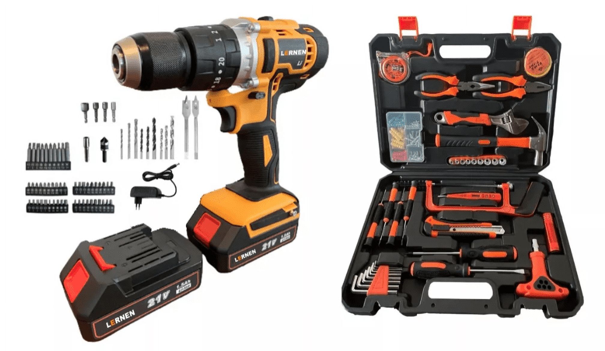 Lernen - Pack Taladro Inalámbrico 21V 2Baterías + Set Herramientas
