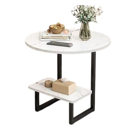 Click Ventas - Mesa Auxiliar Moderna Marmoleado Decoracion Redondo Blanco