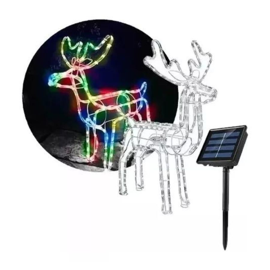 Reno navideño luz led solar decorativo 90cm multicolor