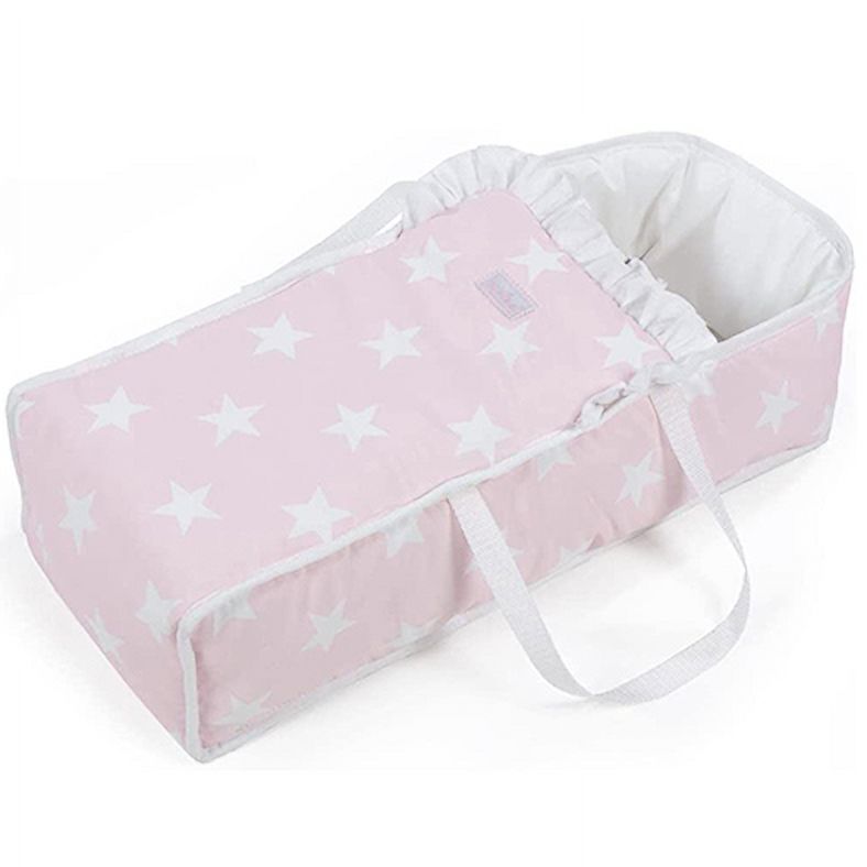 Hermoso moisés para muñecas realizado en algodón de color rosa con estrellas. ideal para transportar las muñecas a cualquier parte de la forma más cómoda. para muñecas de 30 a 46 cm.