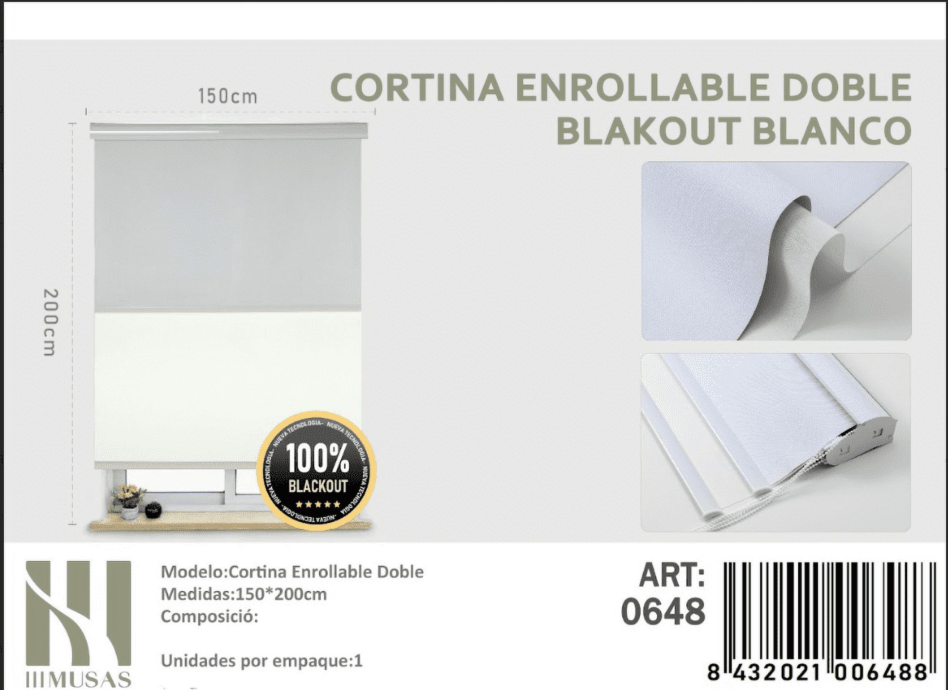 Cortina enrrollable doble blackout blanco 150x200cm iii musas