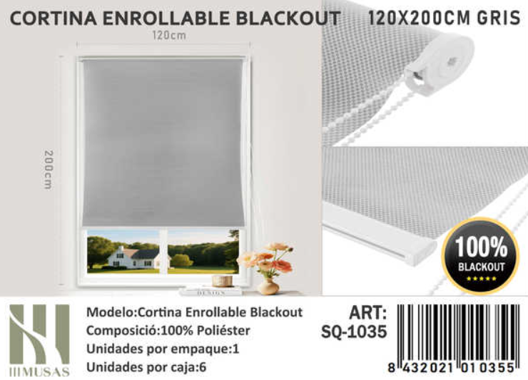 Mundo Shopping - Cortina Enrrollable Duo Color Gris 120X200Cm Iii Musas