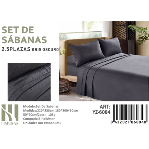 Mundo Shopping - Set De Sabanas King Gris Oscuro 200 Hilos + 2 Funda De Almohada | Lider Electrohogar