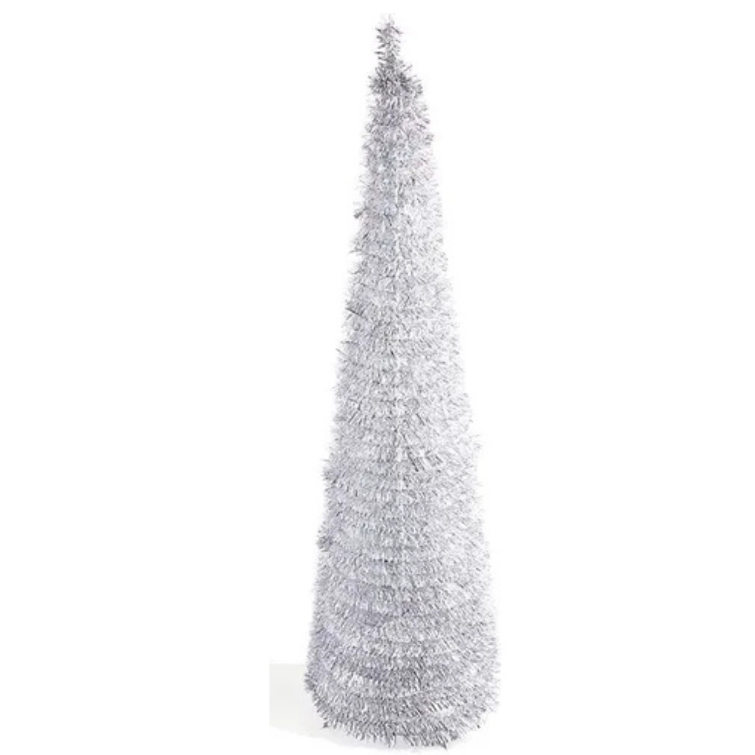 Pino navideño 1.5 metros, estilo tinsel plateado, retráctil
