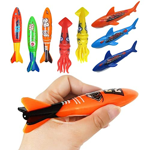 Juego de juguetes de buceo en alberca para niños, práctica de buceo y natación, torpedos de hundimiento submarino, tiburones y calamares