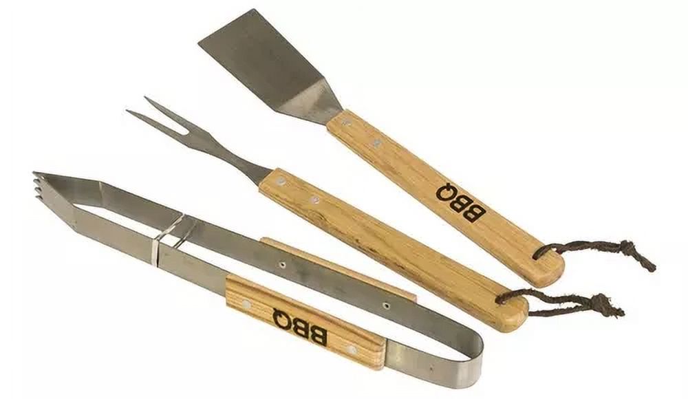 Importclick - Set Asado Parrilla 3 Piezas Acero Inoxidable Mango Madera