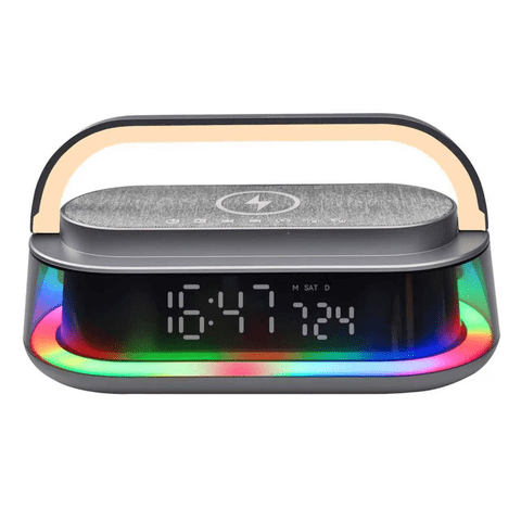 Genérico - Parlante Multifuncional Carga Inalámbrica, Reloj Y Luces Rgb Gris | Lider Electrohogar