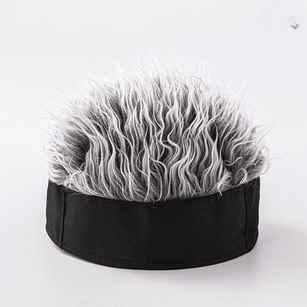 Gorra con Peluca De Pelo Falso Gris Temático