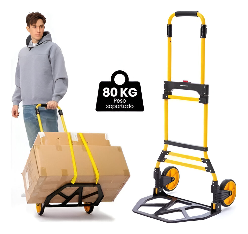 Carro de carga plegable: transporta hasta 80 kg con facilidad y comodidad.