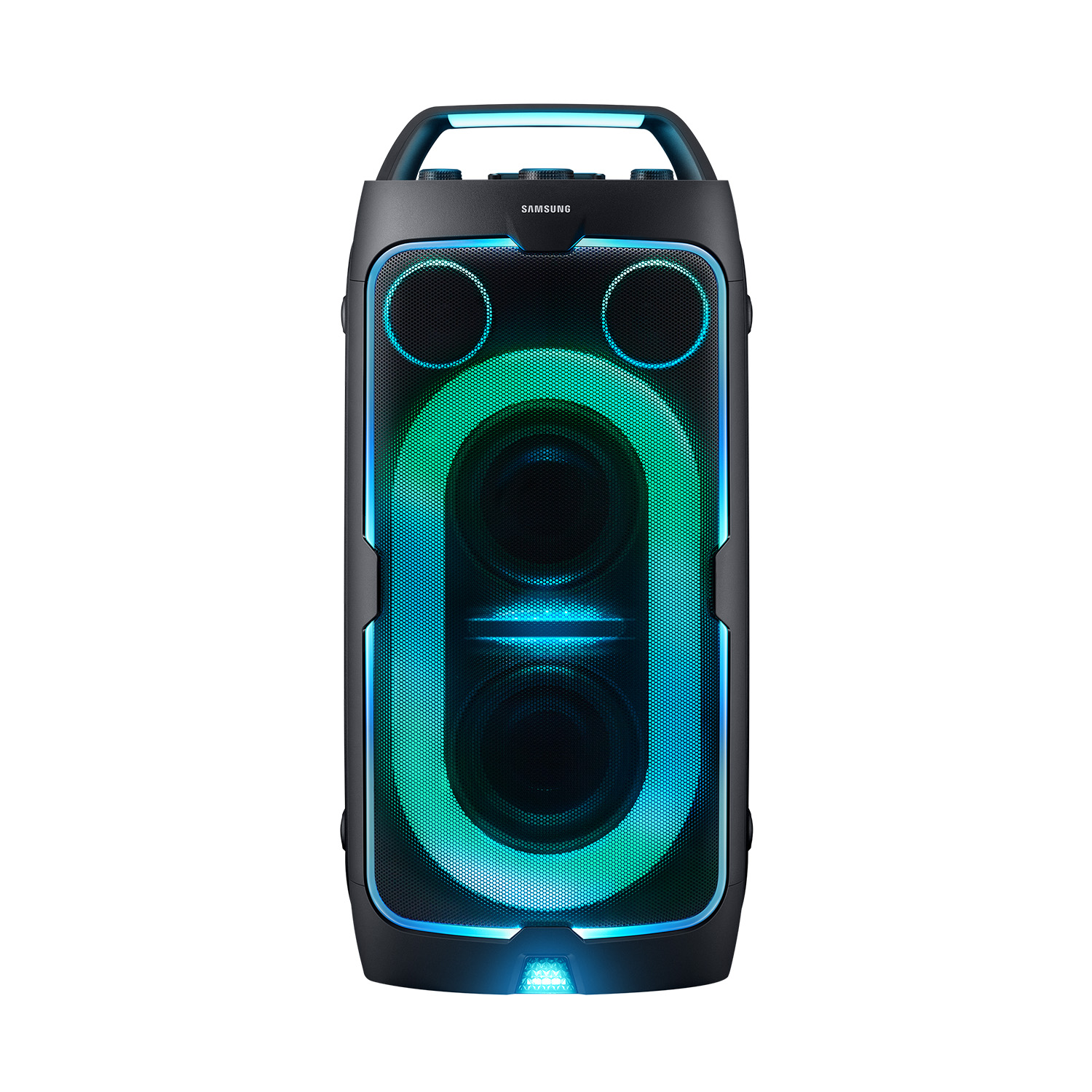 Desata el ritmo en cualquier lugar resumen de las principales características potente sonido de fiesta sumérgete en un sonido potente y de alta calidad con un nuevo diseño elegante. los woofers duales y tres modos de bajo personalizados ofrecen graves profundos y ruidosos que se adaptan a cualquier estado de ánimo - ya sea que estés celebrando una noche de discoteca o relajándote con un ambiente frío. además, los tweeters duales equipados con guía de onda proporcionan una cobertura de alta frecuencia más amplia para obtener detalles más nítidos y precisos en cada nota.