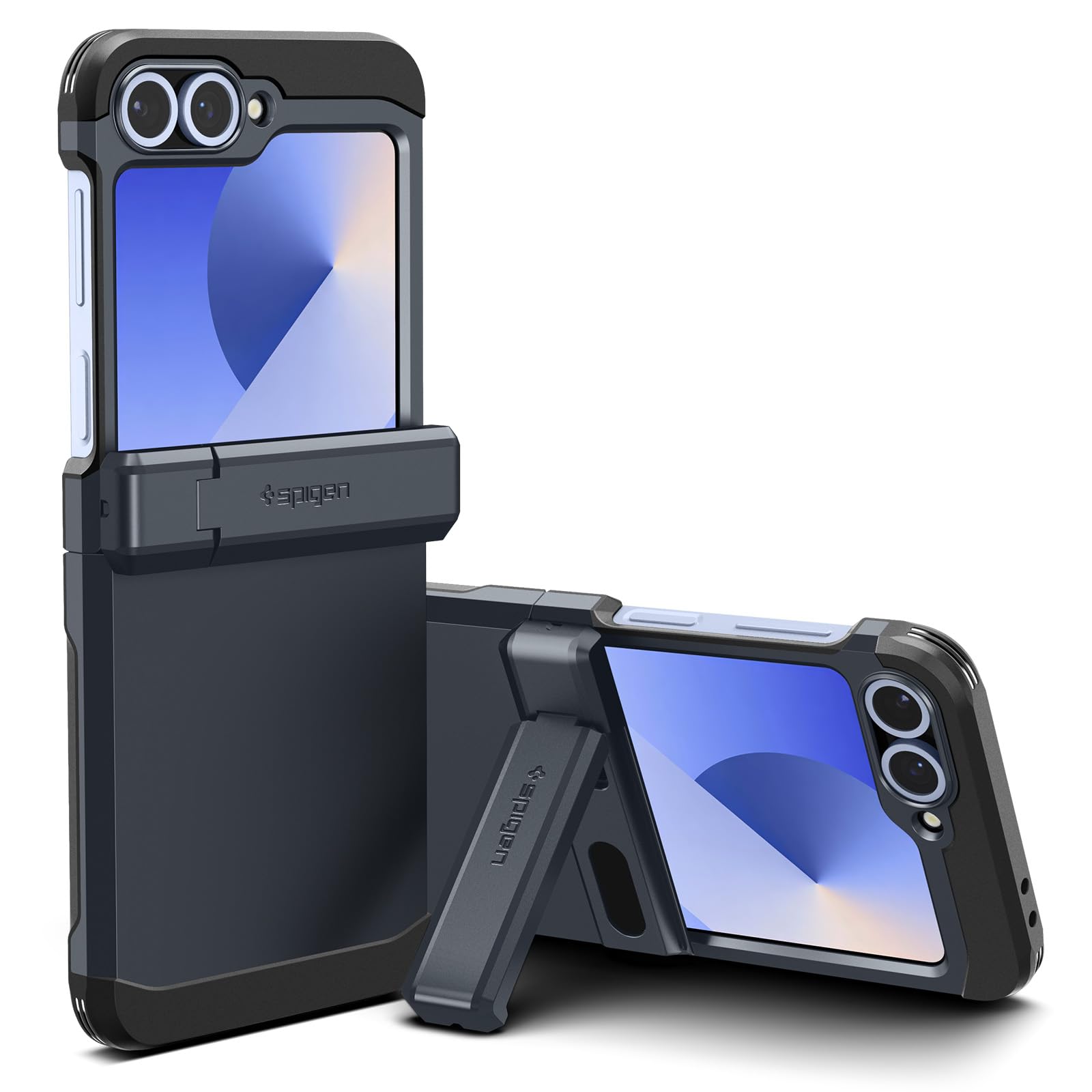 Funda spigen tough armor pro diseñada para el galaxy z flip 6 (2024) [soporte] - metal slate - tecnología de espuma completamente nueva para una capa adicional de resistencia a los golpes - combinación de tpu y policarbonato para una doble protección contra caídas y arañazos - soporte reforzado con bordes levantados para proteger la pantalla y la cámara - funda para galaxy z flip 6 compatible con el galaxy z flip 6