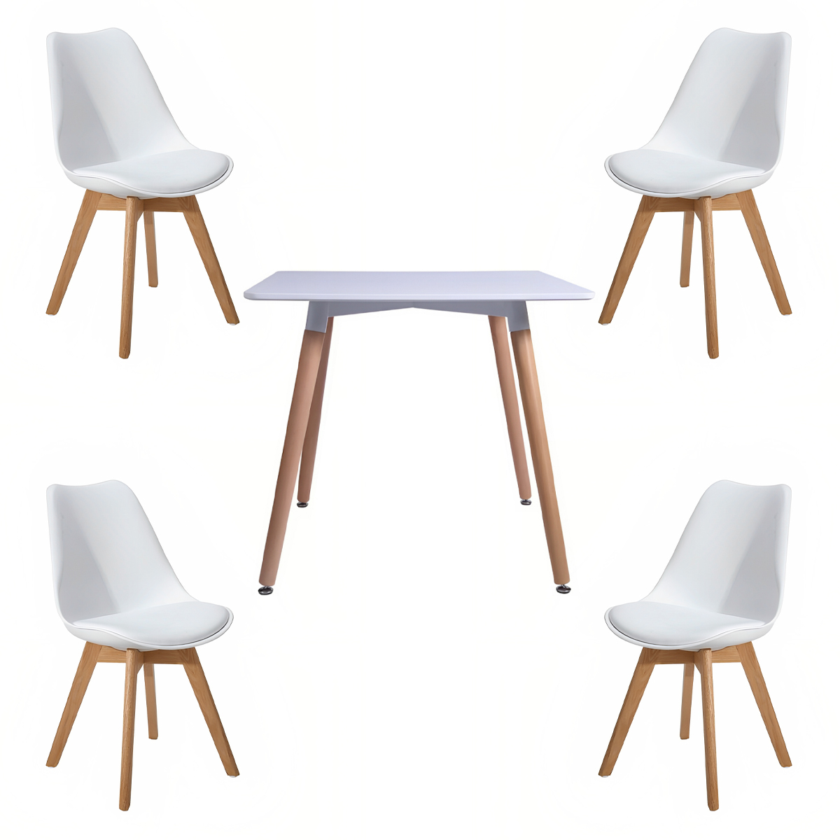 Comedor mesa cuadrada blanca + 4 sillas tulip acolchadas blancas