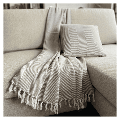 Decoghar - Combo Deco 2 Cojines Y 1 Manta Chevron Beige / Blanco Diseño Moderno Lavable X Mts | Lider Electrohogar