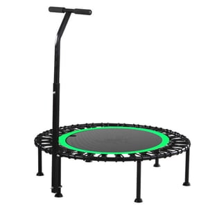 Este trampolín fitness cuenta con una superficie de rebote redonda antidesgaste y resistente al desgarro, un mango t-shaped ajustable diseñado para un fácil manejo y un rebote seguro, junto a su manillar de material de espuma evita cualquier accidente.