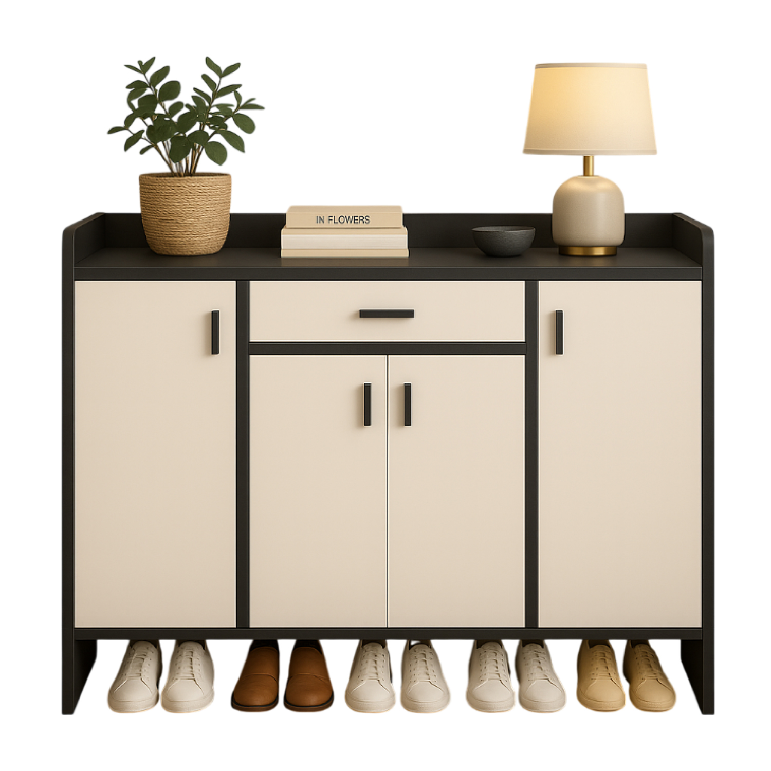 Zapatero Blackey 4 Puertas Organizador Estante + Cajón 118cm
