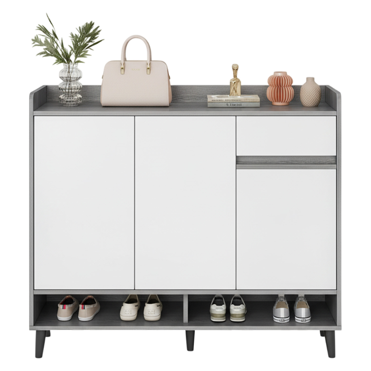 Zapatero Grey 3 Puertas con Cajon Organizador Estante 100 cm