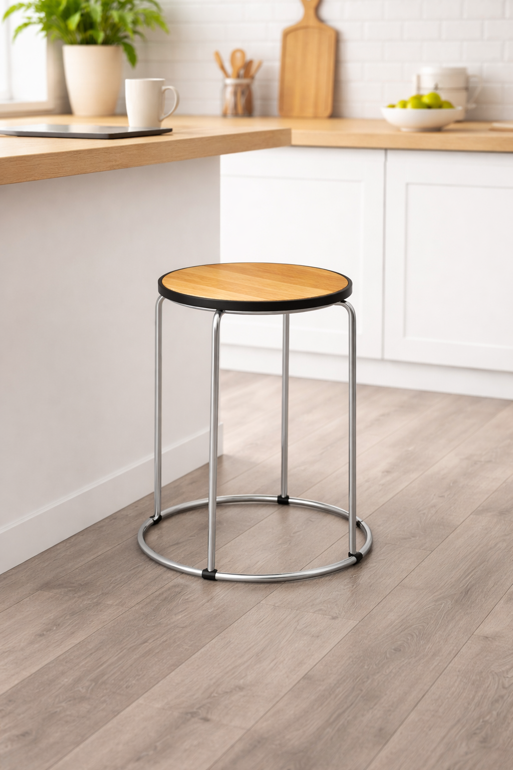 Genérico - Piso Taburete Circular Con Asiento De Madera Y Estructura Cromada | Lider Electrohogar