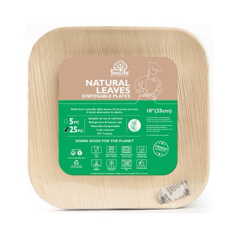 Ecosoulife - Pack De 25 Platos Cuadrados Ecológicos Hoja De Palma 100% Biodegradable 25Cm. | Lider Electrohogar