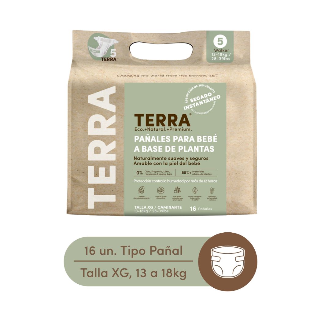 Terra - Pañales Biodegradables Talla Xg 16 Un