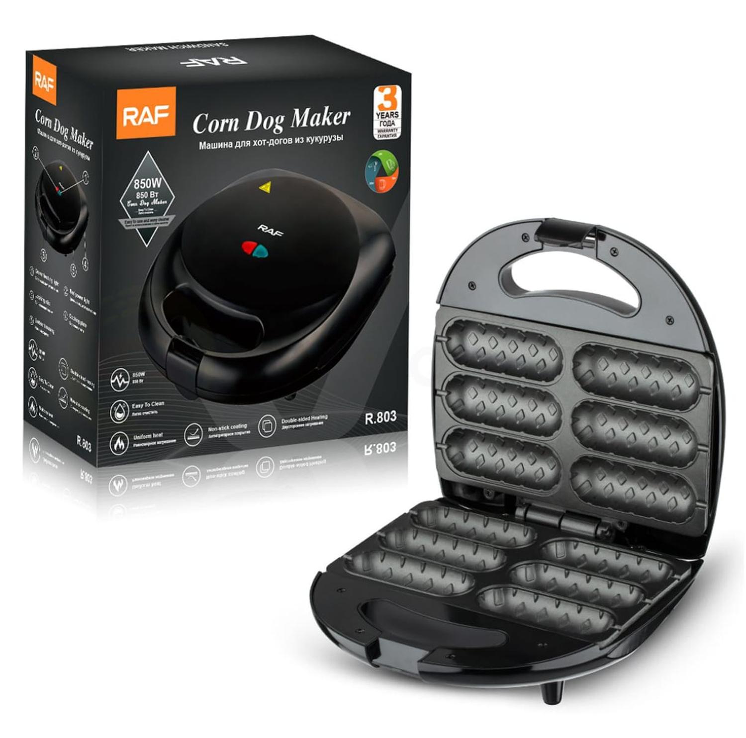 Nuestra mini máquina para salchichas cuenta con control de temperatura de 5 minutos y se ajusta fácilmente para gofres ligeros y esponjosos, o oscuros y crujientes. la superficie antiadherente, libre de pfoa y resistente a los arañazos está diseñada para liberar fácilmente los alimentos para que la masa no se pegue a la superficie de cocción. brinde más bocadillos nutritivos a usted y a su familia. marca: raf • modelo: r.803 • potencia de 850 watts • capacidad para 6 salchichas • tiempo de cocción 5 minutos aproximadamente • placa con revestimiento antiadherente • dos luces indicadoras • eléctrico, rápido y fácil de limpiar