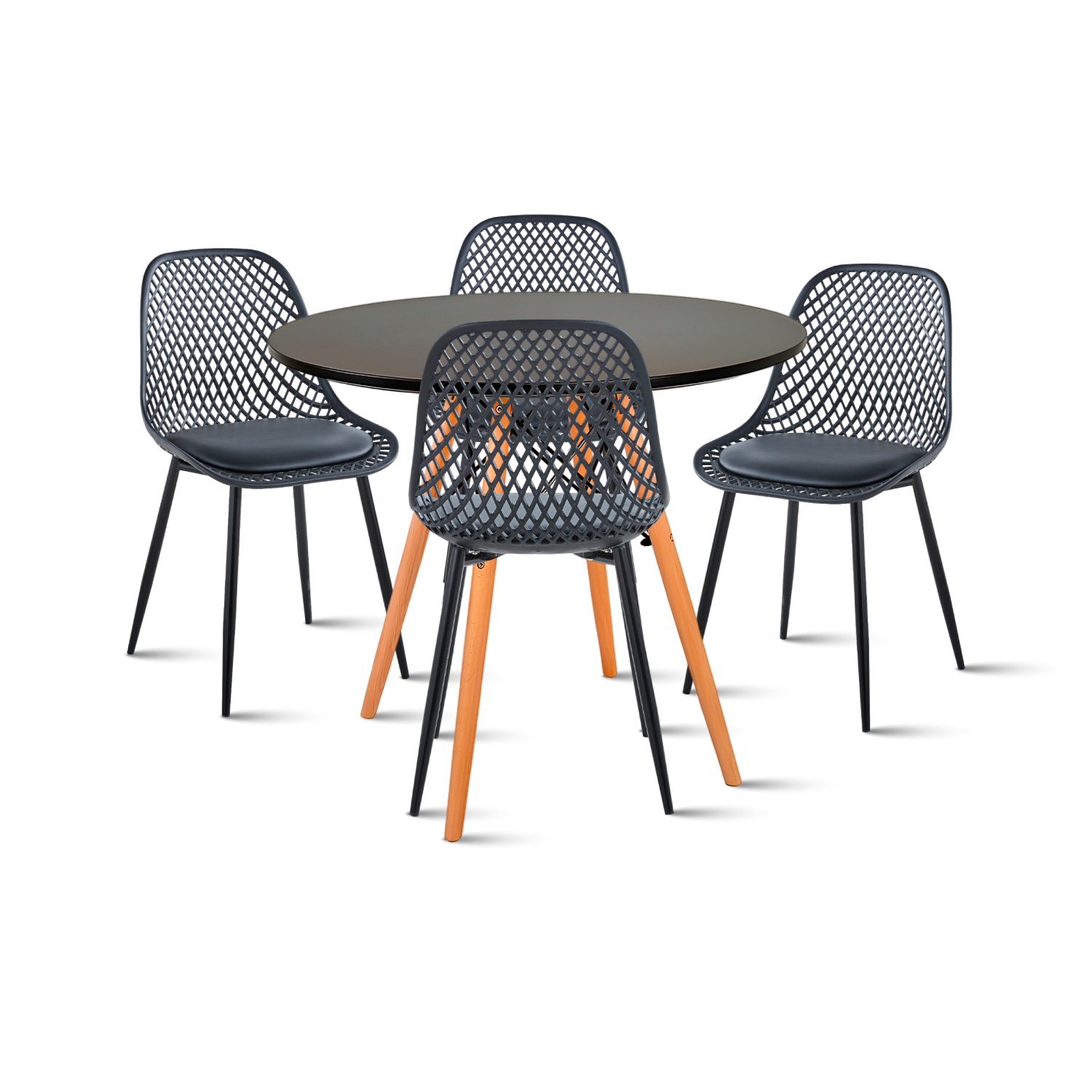 Klik Muebles - Comedor Mesa Redonda Negra 80Cm + 4 Sillas Radar Negras