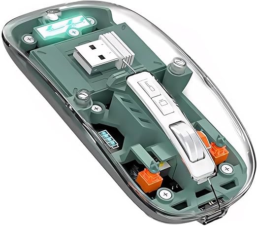 Veat00L - Mouse Inalámbrico Transparente, Mouse Bluetooth 5.3, Mouse Recargable Ergonómico Con Receptor Usb, Silencioso Click, Ratón 3 Modos(2.4G/5.2/5.2), Ratón Óptico Ajustable Dpi Ratón Para Portátil,Pc,Mac | Lider Electrohogar