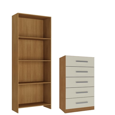 Movelaria - Combo Cómoda 5 Cajones Off White + Librero Color Natural R0516 | Lider Electrohogar