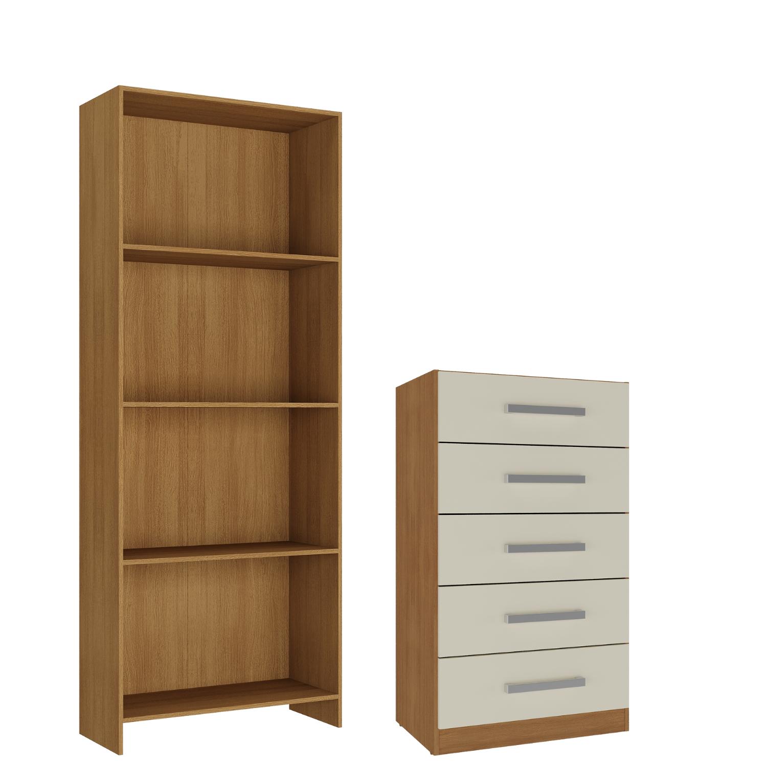 Movelaria - Combo Cómoda 5 Cajones Off White + Librero Color Natural R0516 | Lider Electrohogar