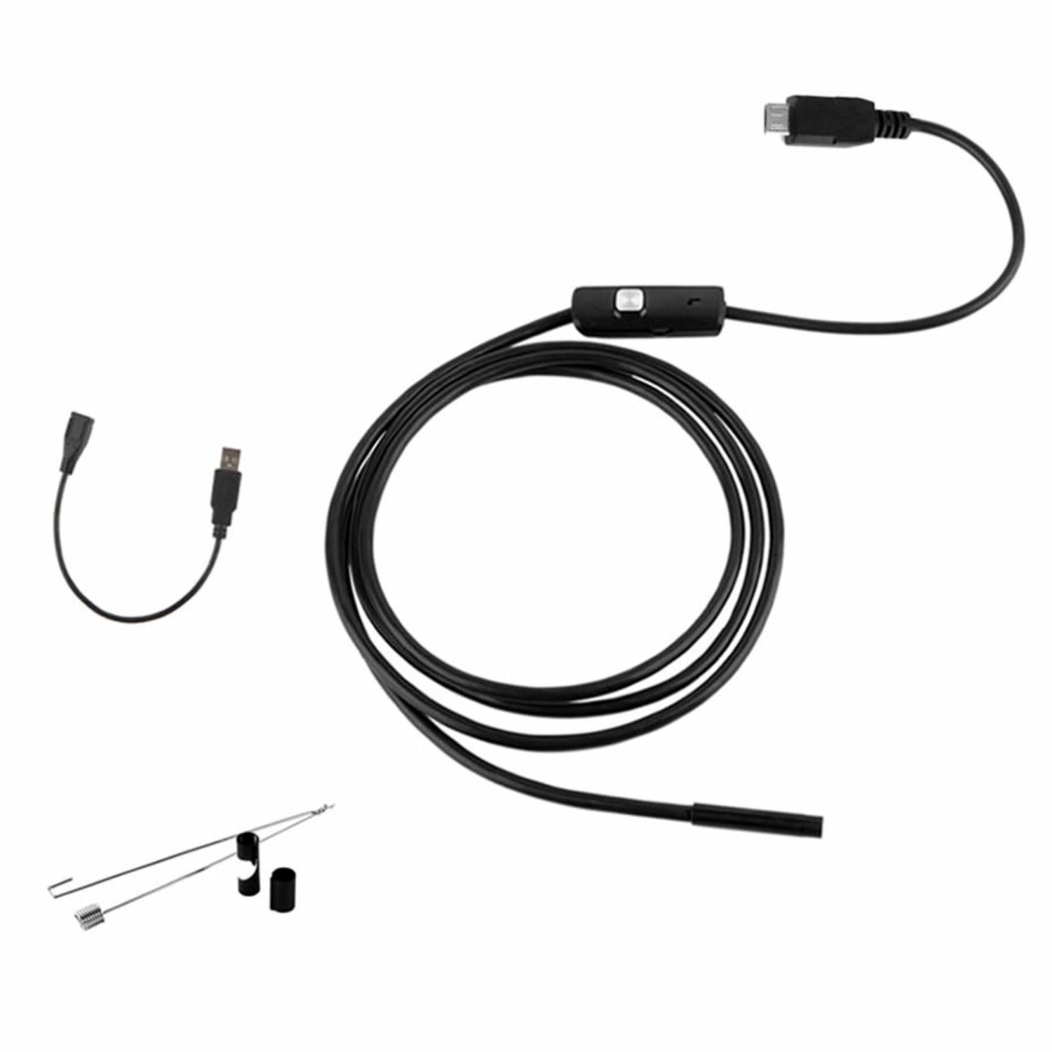 Cámara endoscópica para todo tipo de usos, puedes utilizarla para ver al interior de motores de autos, cañerías de agua/gas, o el interior o exterior de cualquier objeto que necesites, con luz led de gran potencia, esta cámara puede regular la intensidad de luz. incluye un pequeño gancho, un gancho con imán en la punta, micro espejo, mini cd con aplicaciones para utilizarla en smartphones android que cuenten con sistema otg. * colores: negro * tamaño: 10cm. x 10cm. x 8cm * peso: 110g. * largo: 2mts. * grosor camara: 8mm. * material: plástico * compatible: smartphone con otg, notebook, netbook, tablet. * producto 100% recomendado.