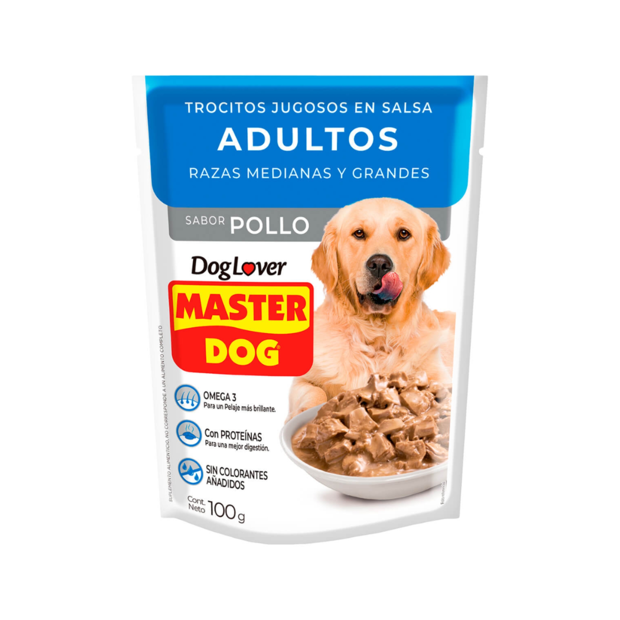 Los exquisitos trocitos en salsa son ideales para regalonear a tu master dog con un premio rico y saludable. contiene omega 3 para mantener una piel sana y un pelaje brillante. sin colorantes añadidos. piel sana y pelaje brillante: sabemos lo importante que es ver a tu master dog con un pelaje suave y brillante. por esto, incorporamos ácidos grasos omega 3 en su fórmula para que su pelaje siempre esté sano.