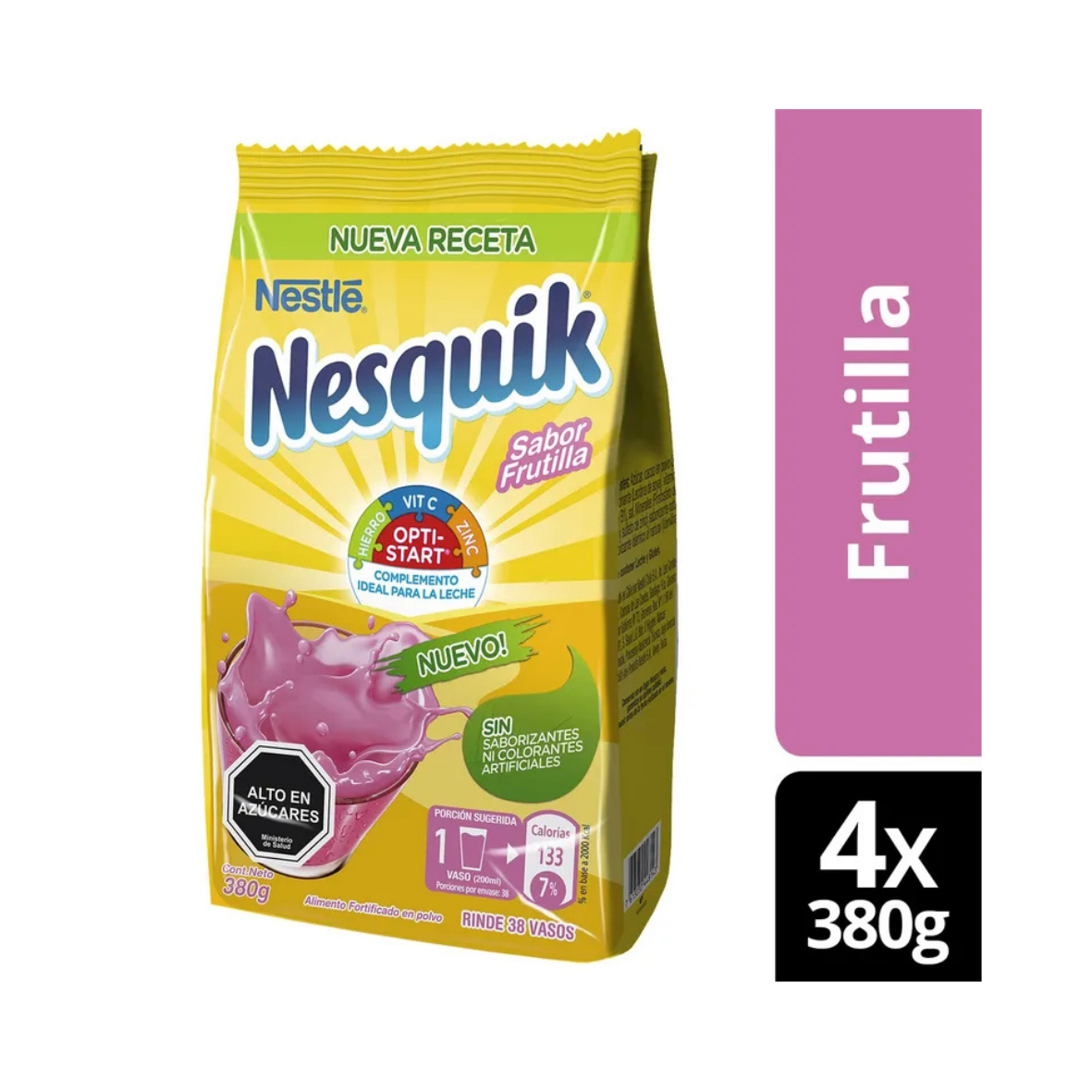 Pack X4 Saborizante Para Leche Nesquik® Optistar® Frutilla Bolsa 380G | Lider Electrohogar