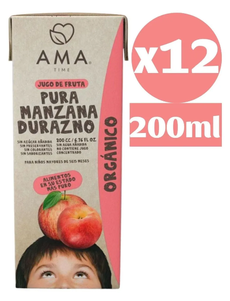 Ama Time - Pack Ama Jugo De Fruta Orgánico Manzana Durazno 20X200Cc Tetra
