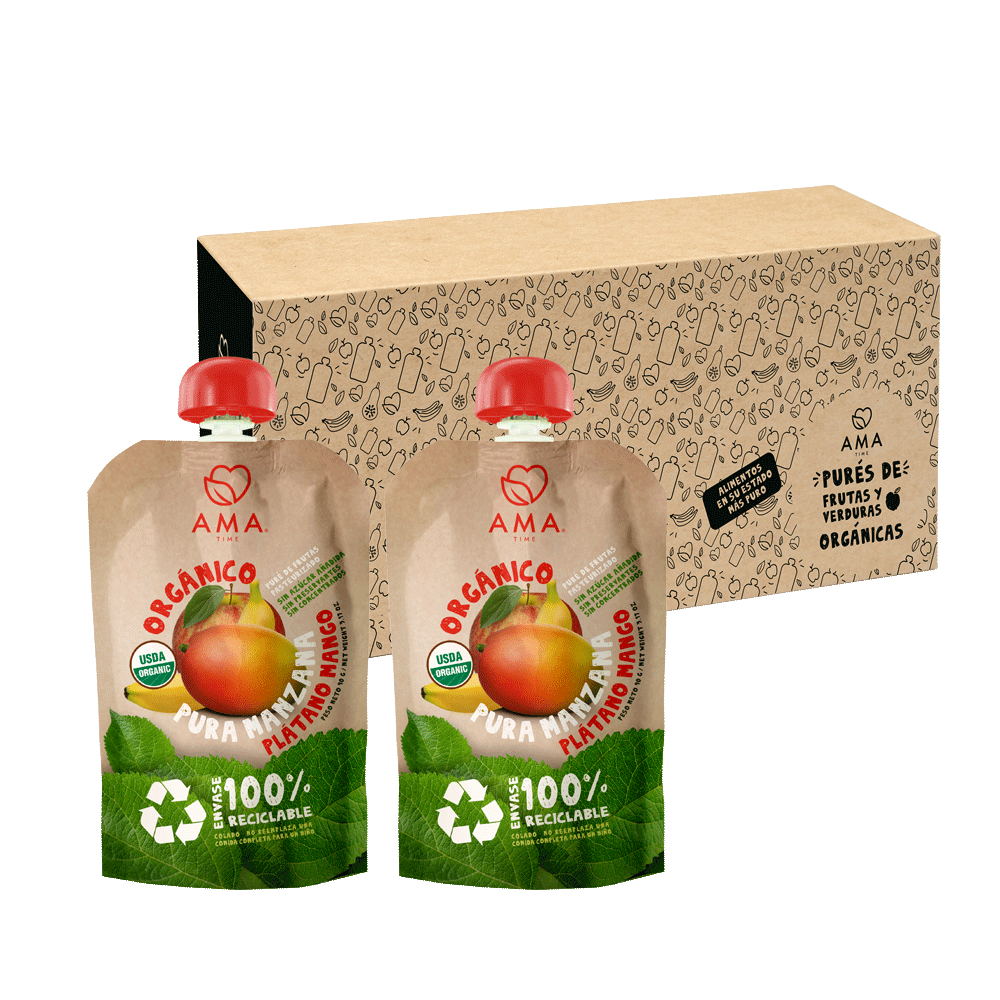 Ama Time - Pack 32 Unid - Puré Manzana Mango Reciclable 90 Grs
