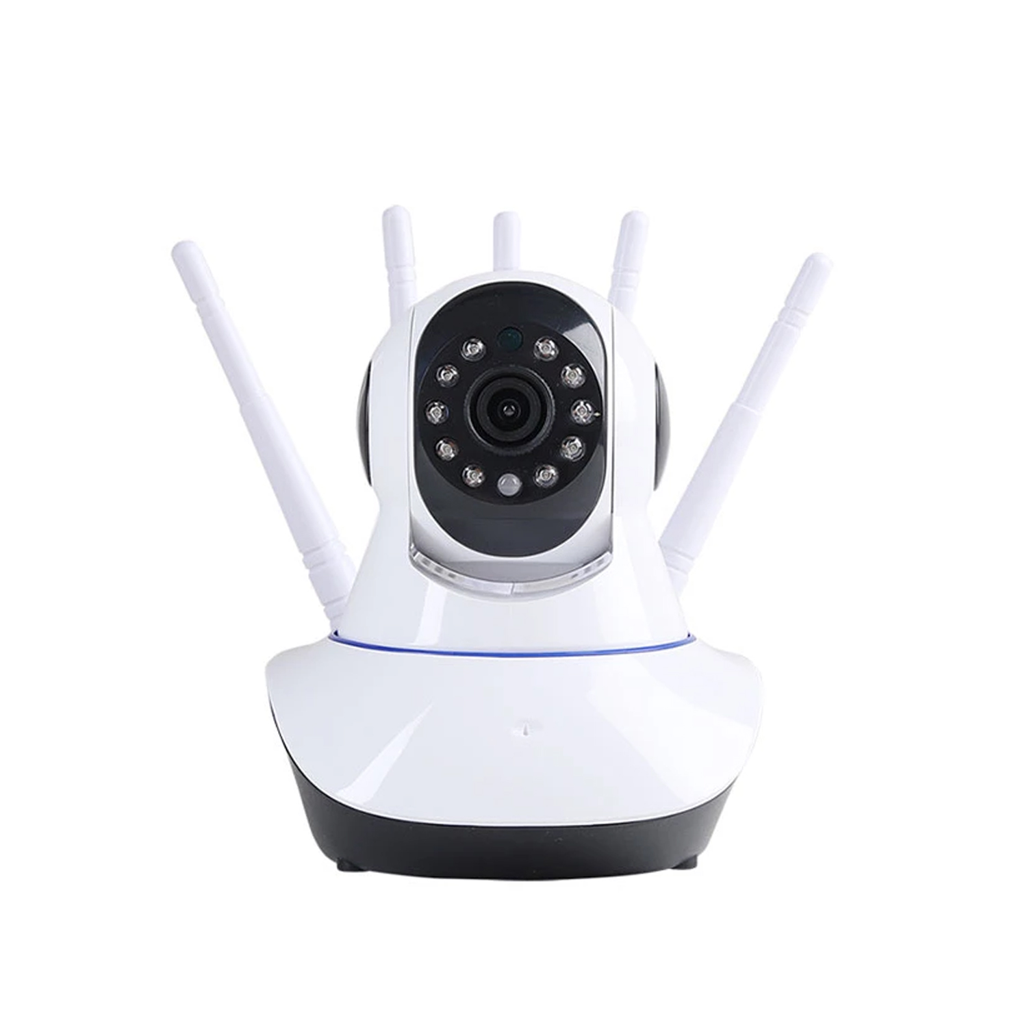 Cámara seguridad con la que puedes ver de manera remota todo lo que sucede en tu hogar, negocio, lugar de trabajo u otros lugares. posee un sistema giratorio capaz de moverse angularmente donde tú quieras, el cual puedes hacerlo desde cualquier lugar en que te encuentres con tu smartphone o pc. cámara ip con 5 antenas para smartphone, conectividad unica con wifi 2.4 ghz, grabación en hd, rotación de 360°, ranura para micro sd para grabar en la misma cámara, viene con fuente de 5 v, base para sujetarla, tornillos y tarugos. * color: blanca. * medidas: 14cm x 14cm x 11cm. * peso: 480 g. * material: pvc. * producto 100% recomendado.