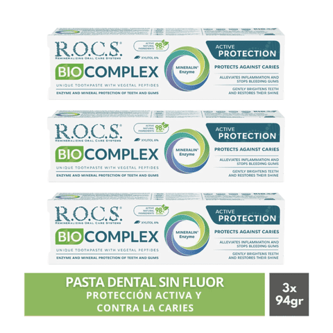 Pack 3 Pasta Dental Sin Fluor Rocs Biocomplex 94G Protección Activa | Lider Electrohogar