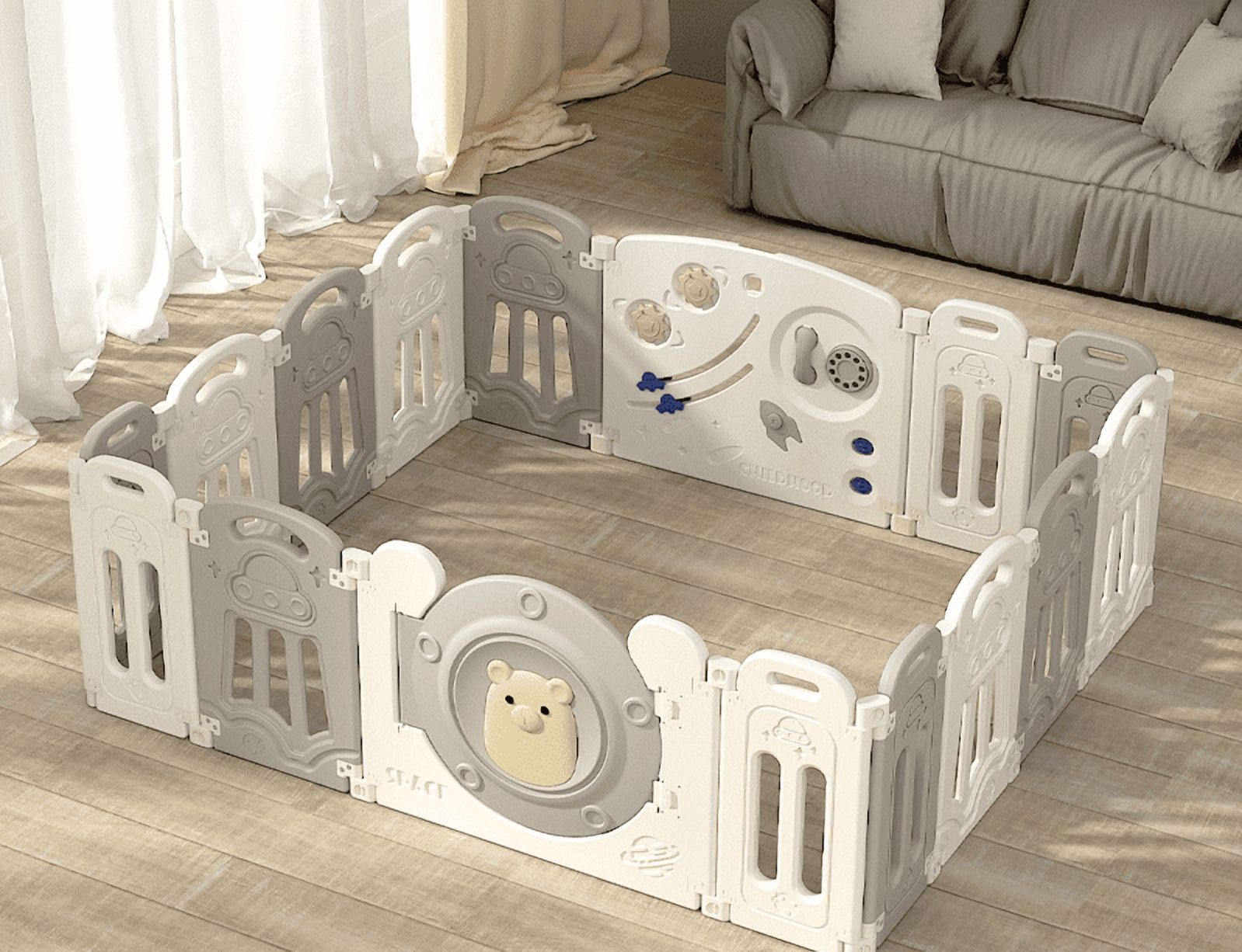 Bbqool - Corral Didáctico De Juegos Plegable Teddy Grey