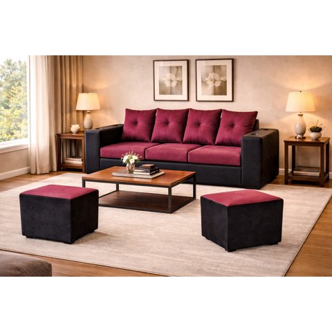 Genérico - Sofa Aries 2Puff Burdeo