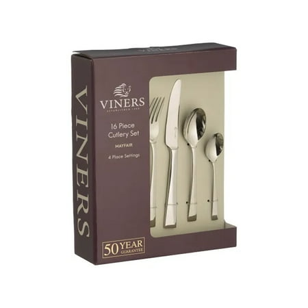 La colección mayfair es sofisticada con su diseño de estilo art deco. los cubiertos están diseñados para caber cómodamente en su mano y es un placer comer con ellos. el juego consta de 4 tenedores de mesa, 4 cuchillos de mesa, 4 cucharas de postre y 4 cucharas de té. fabricados con acero 18/10 de excelente calidad, nuestros cubiertos están pulidos con un acabado de espejo de lujo. el juego de larga duración es resistente a la oxidación y se puede usar en el lavavajillas. esta compra única en la vida se hace para pasar de generación en generación. viners existe desde hace más de 110 años y se ha convertido en una marca británica muy querida y un nombre familiar, impregnado de herencia.