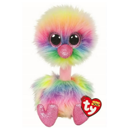 Ty peluche beanie boos asha avestruz mediano de 23 cms de alto. asha es un contraste con su mejor amiga orson. donde él es marrón, sus plumas de arcoíris son una sorpresa y una delicia. donde está asha, nadie puede fruncir el ceño. a veces su cabeza desaparece debajo del suelo. incluye su ty heart original con la fecha de su cumpleaños y su poema. mide aprox. 28 cm de alto. se recomienda de 3 años en adelante.
