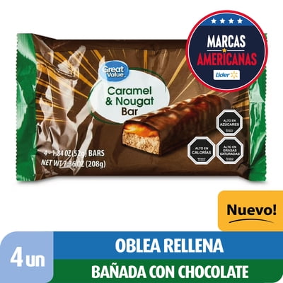 Galleta Oblea Rellena Bañada En Chocolate Con Caramelo Y Nougat 208 G Great Value | Lider Supermercado