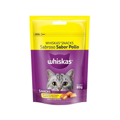 Snack whiskas pollo – snacks crocantes por fuera y suaves por dentro para gatos adultos
