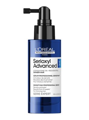 Serioxyl Advanced de Serie Expert, densifica y engruesa de tu cabello fino para evitar el riesgo de caida del cabello en casa.