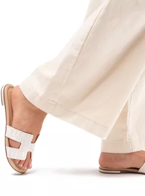 Cuando el minimalismo se encuentra con la textura, nace sandy. una sandalia plana con cuero croco color blanco y diseño entrelazado que potencia cualquier look sin esfuerzo. ligera, flexible y lista para usar todo el día. cambias todo, menos lo que permanece.