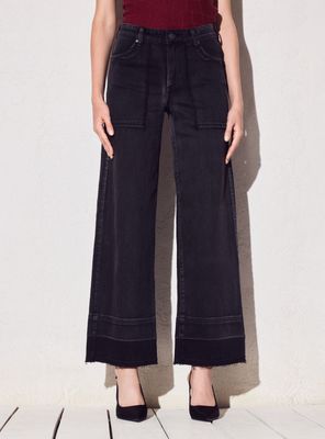 Jeans Wide Leg con Cierre y Bolsillo