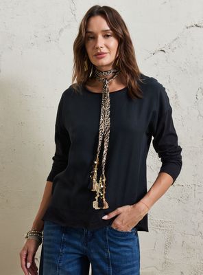 Polera con Detalle de Tela Satinada en Cuello