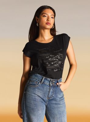 Polera Aplicación de Brillante en el Delantero | Paris