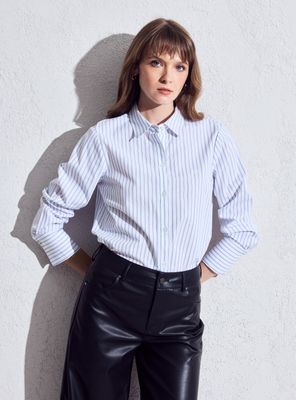 Blusa Camisera Larga con Líneas y Lurex