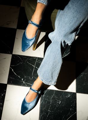 Balleina de velvet en punta y taco bajo