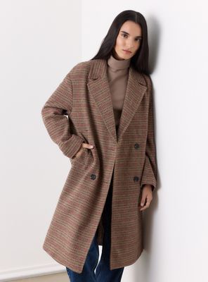 Abrigo Largo de Paño Cepillado con Diseño a Cuadros