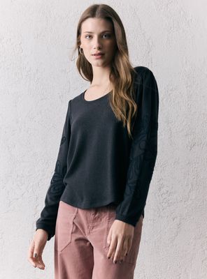 Polera con Detalle Bordado en Mangas y Borde Inferior